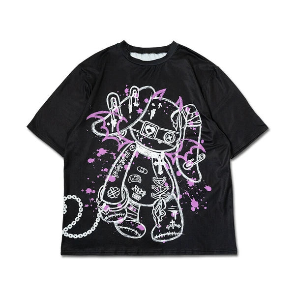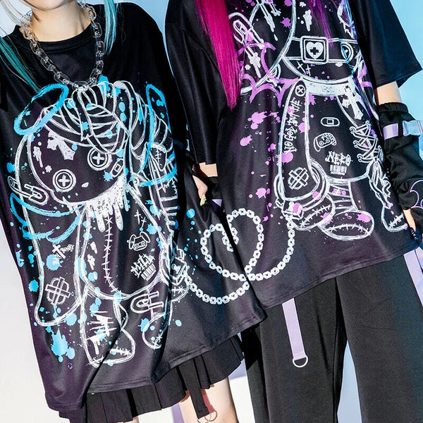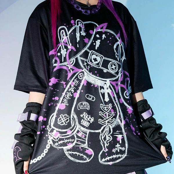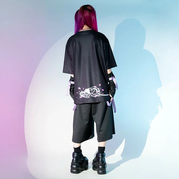 BLOODネロ T 原宿系 サブカル バニー パンク ロック サイバー 大きいサイズ ユニセックス BLACK/PURPLE